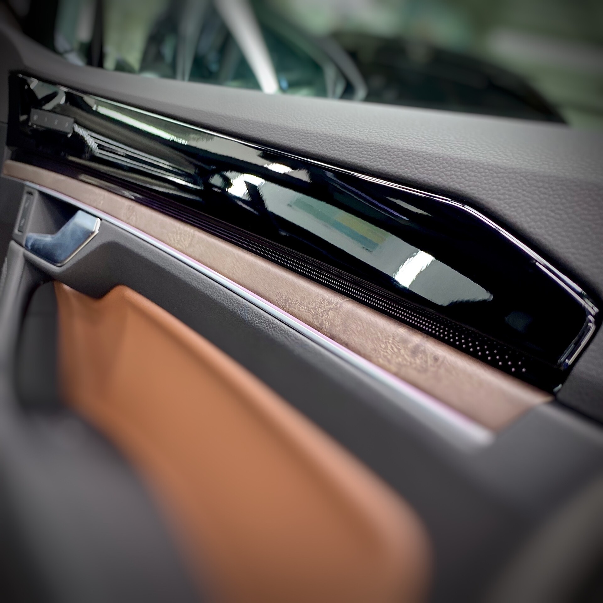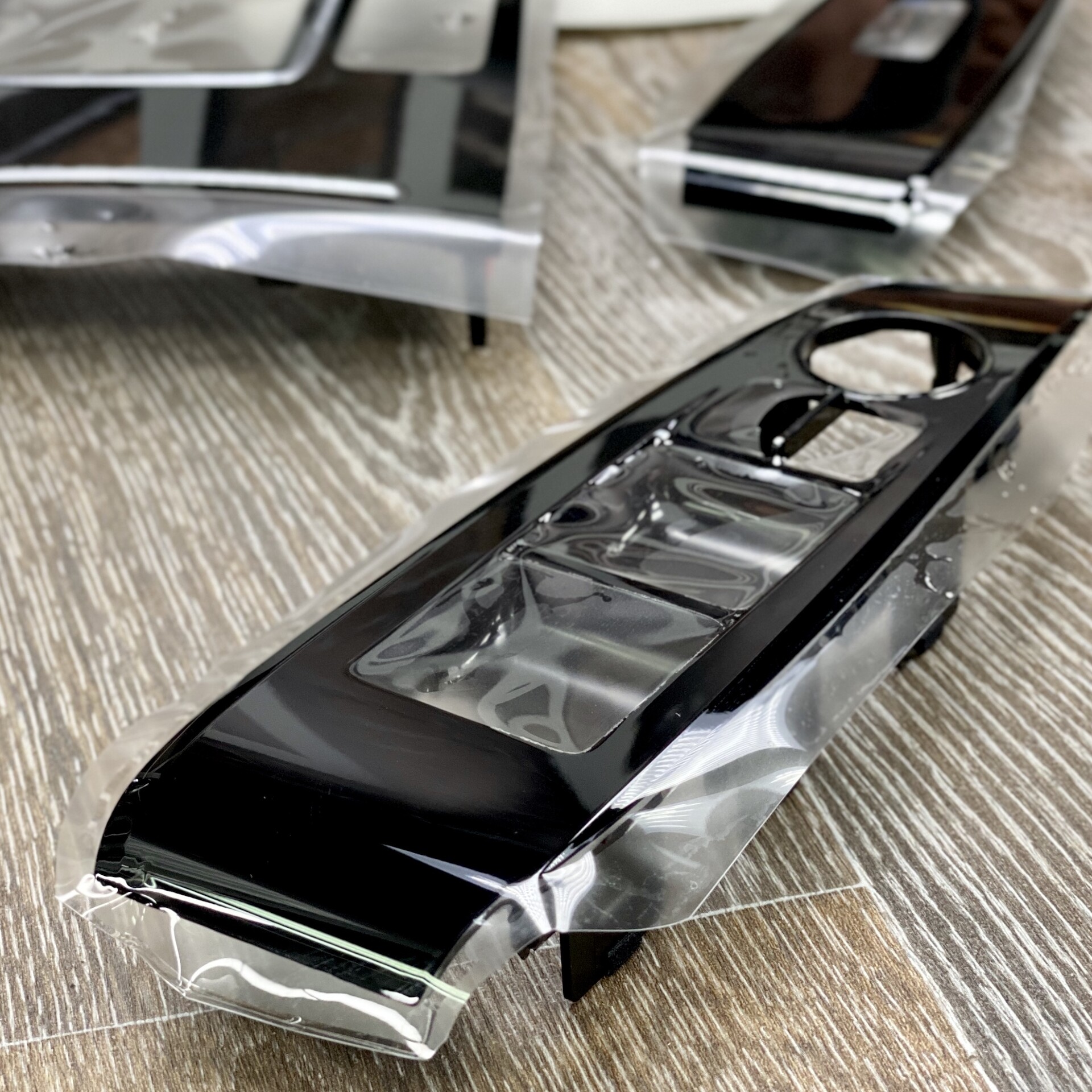 Глянцевые декоративные накладки на дверях или между дверей очень быстро затираются при мойке автомобиля и очистке снега со стекол.